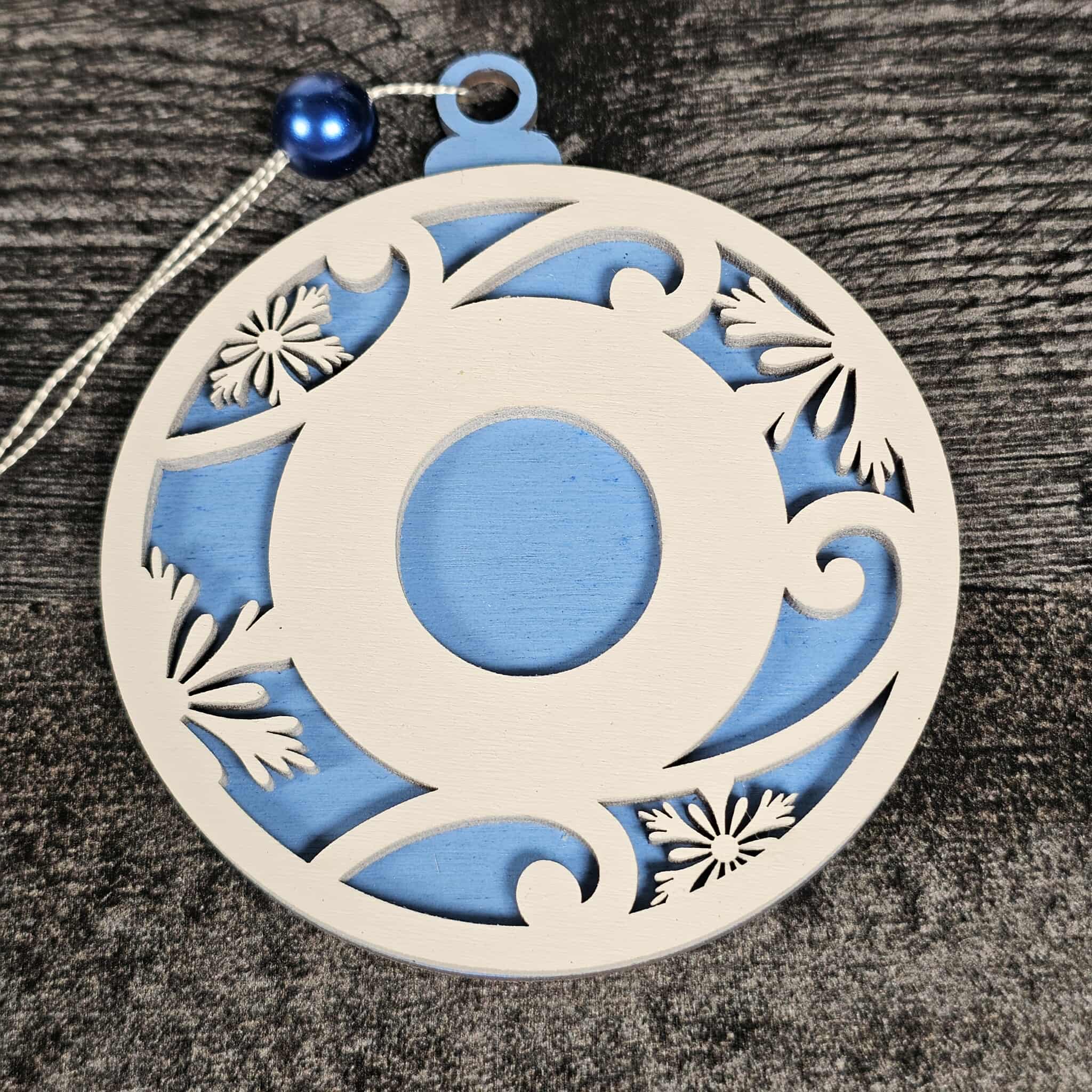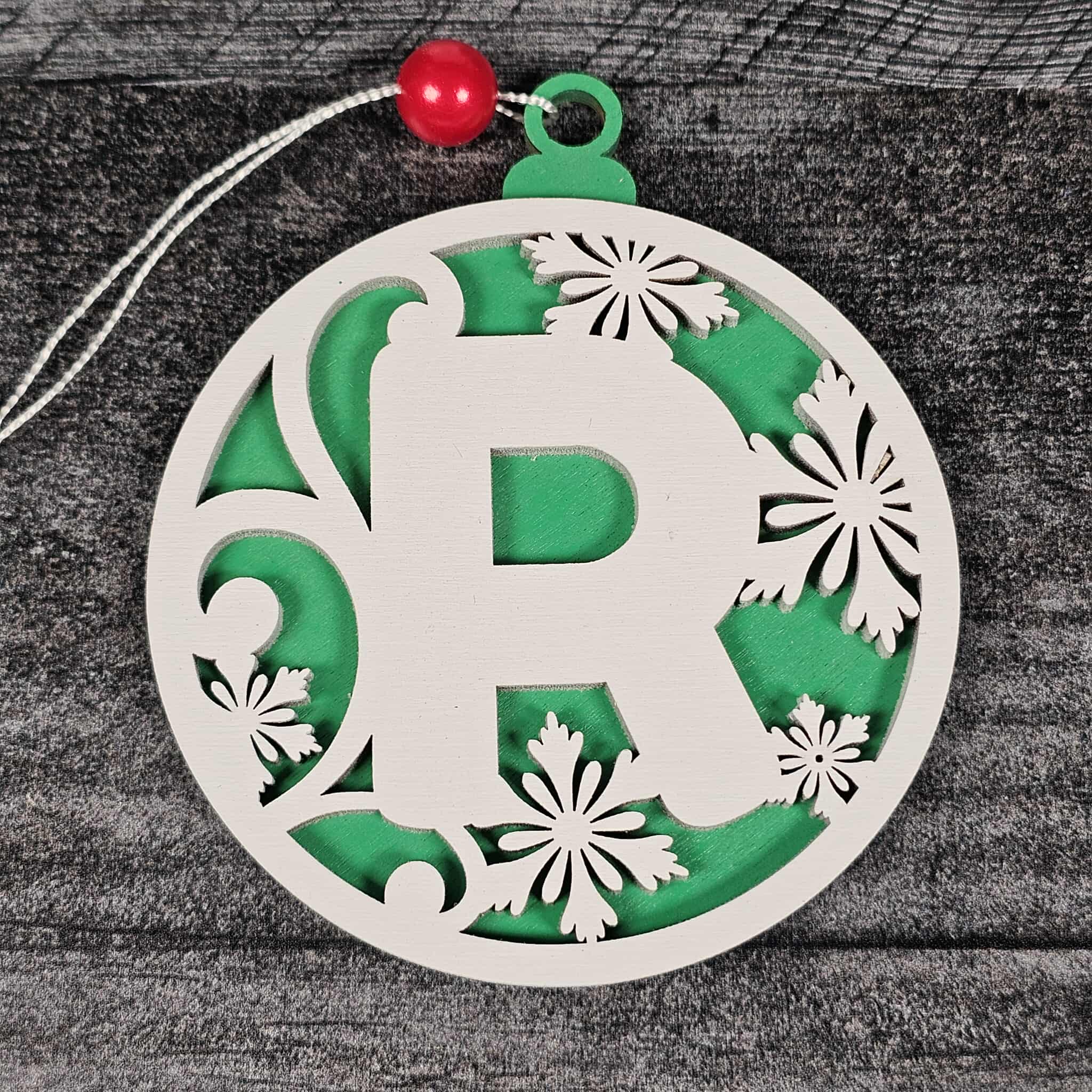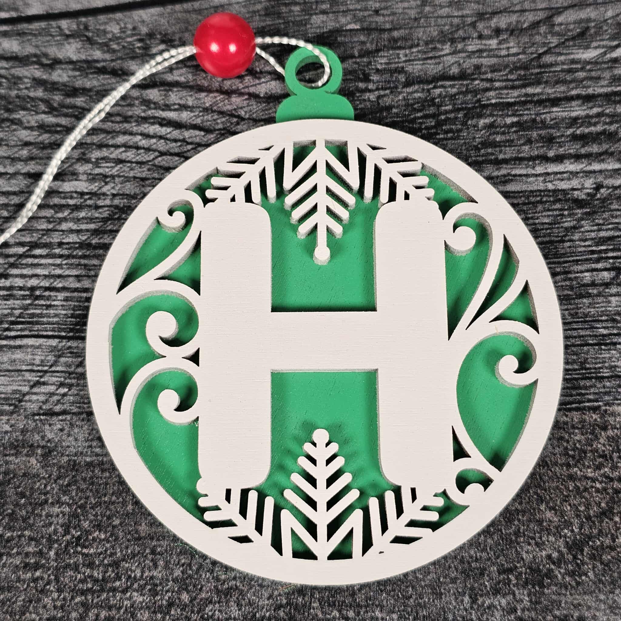 Add a beautifully personalized touch to your holiday décor with these charming laser-cut wooden letter ornaments! Each ornament features a two-layer design, with a crisp white top layer showcasing the letter of your choice surrounded by festive cutout details—such as snowflakes, stars, swirls, or geometric patterns (design varies by letter).