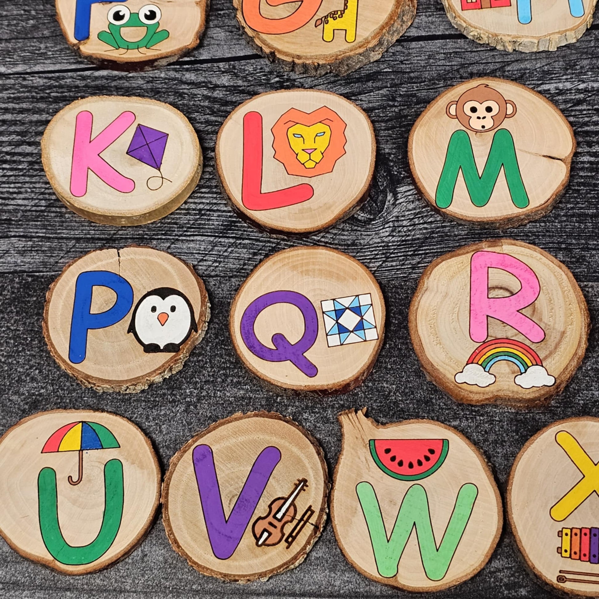 *Do not forget* to put what color you want the letters to be in the Personalization box. You can pick more than one, in which case we will rotate the colors. ~ Upon request, we can also switch out pictures... for example: X can be a fox instead of a xylophone.