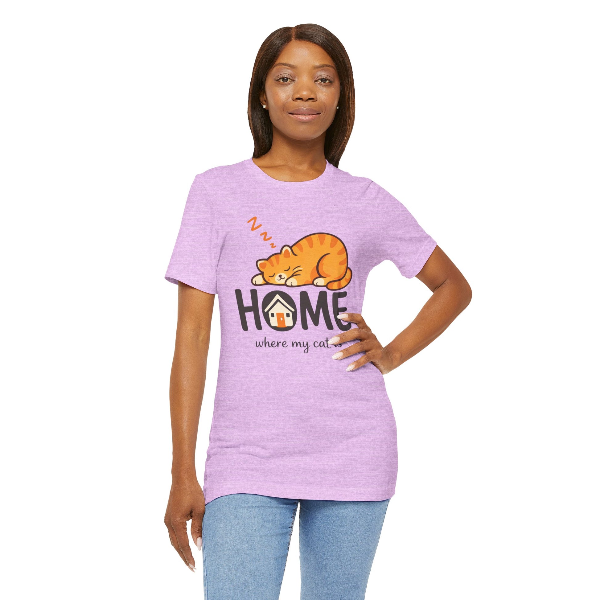 Cat Home T-Shirt — "Home Where My Cat Is" Cute Sleeping Cat Tee