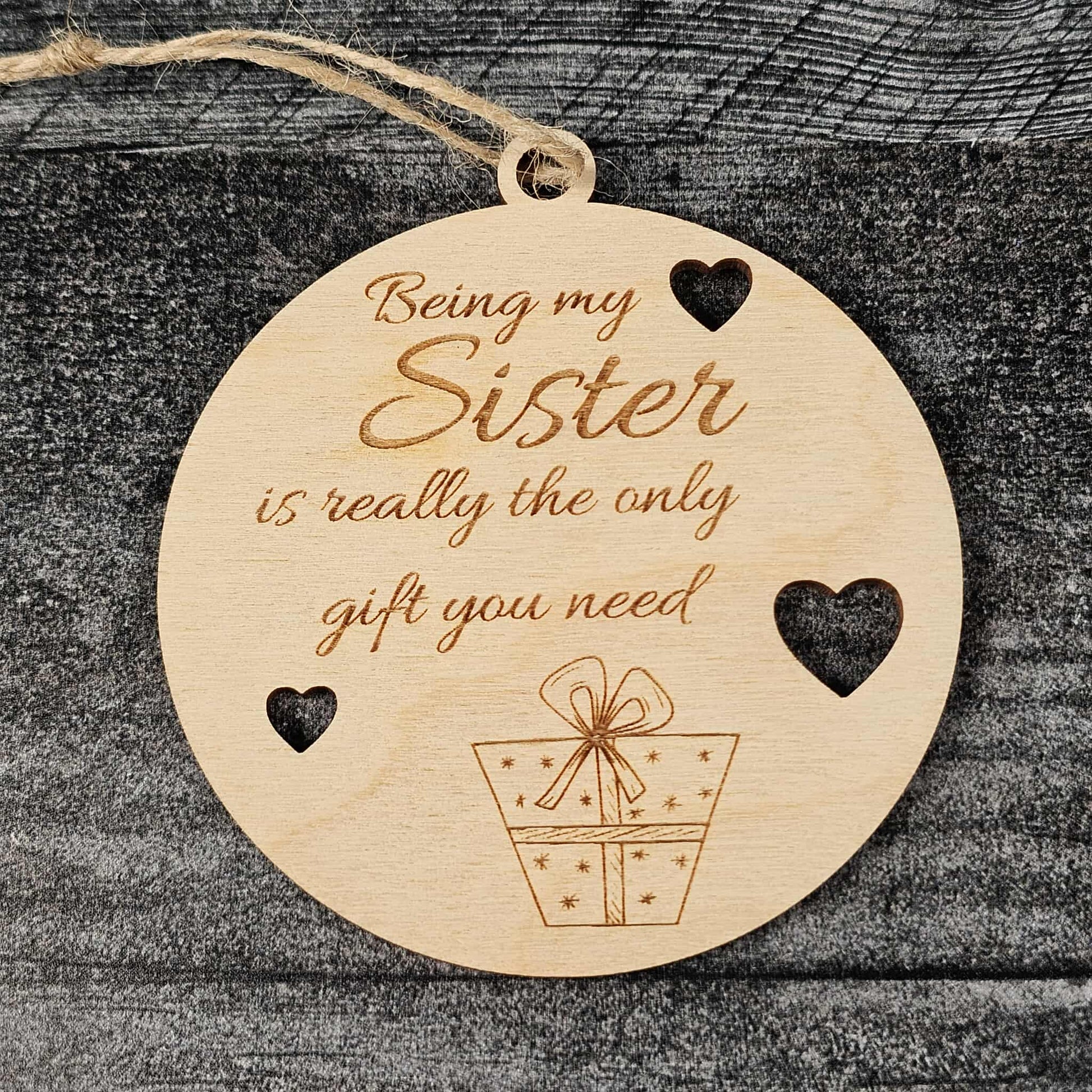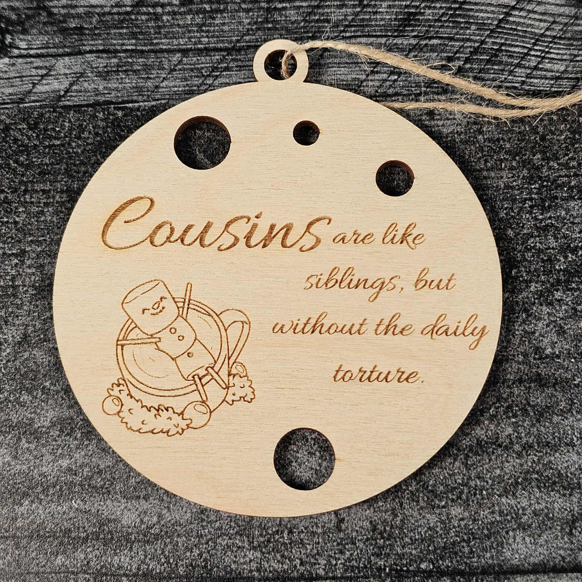 Crafted with care, each 3.5-inch wide ornament is expertly laser-cut and engraved from high-quality wood, featuring witty sayings and delightful designs celebrating the unique bonds of family. From the playful jabs about siblings to the heartfelt appreciation for parents, these ornaments are sure to spark laughter and warm memories.