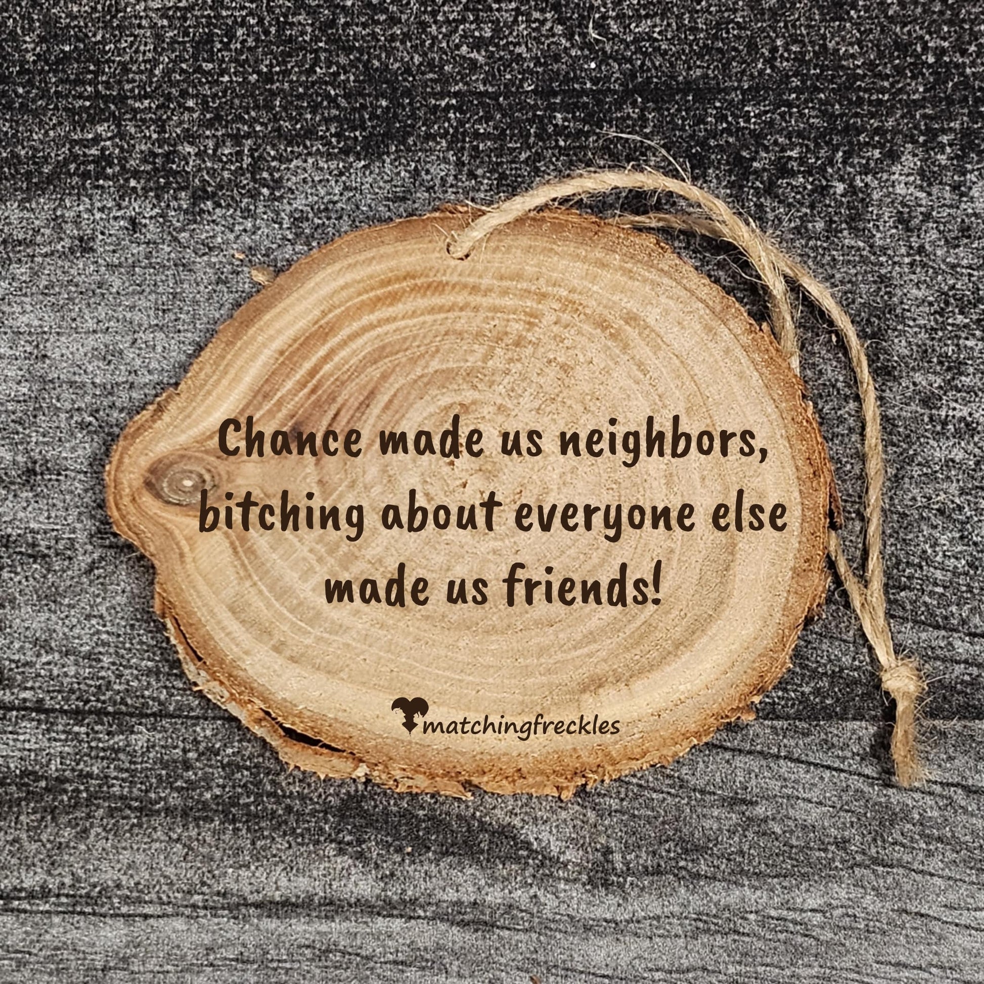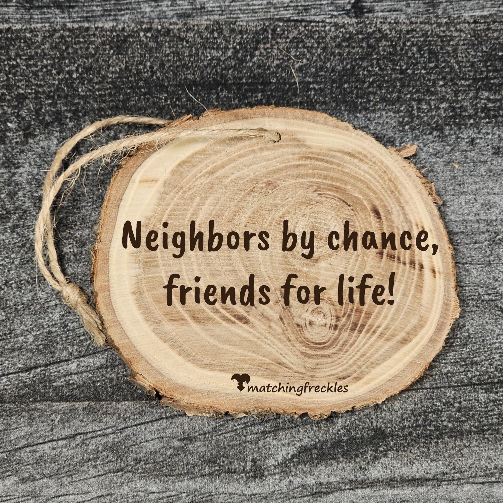 Need a unique gift for your neighbor? This ornament is perfect! The back is blank to allow plenty of room for you to add names, the year or a special message to your gift!
