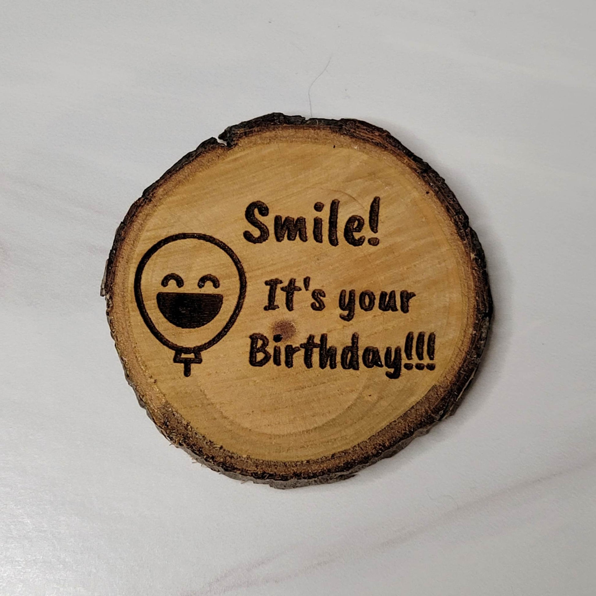Celebrate birthdays in style with our locally sourced live edge wood birthday magnets. Order now and make any birthday celebration even more special!