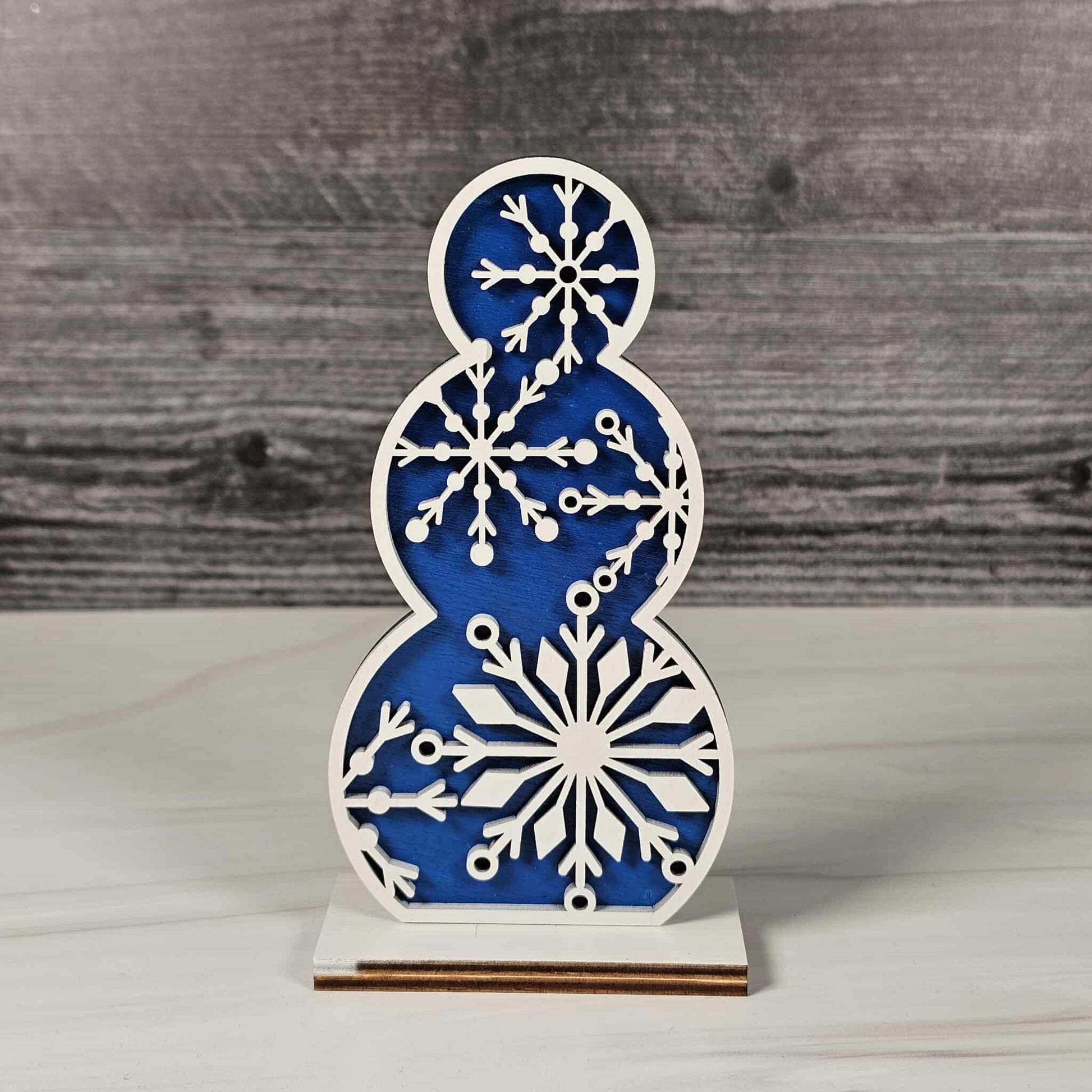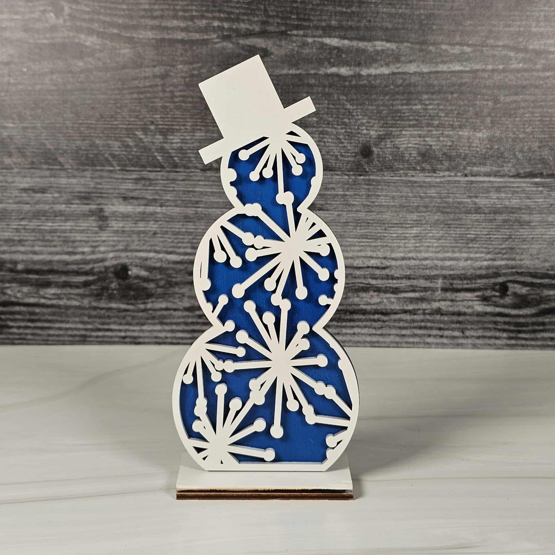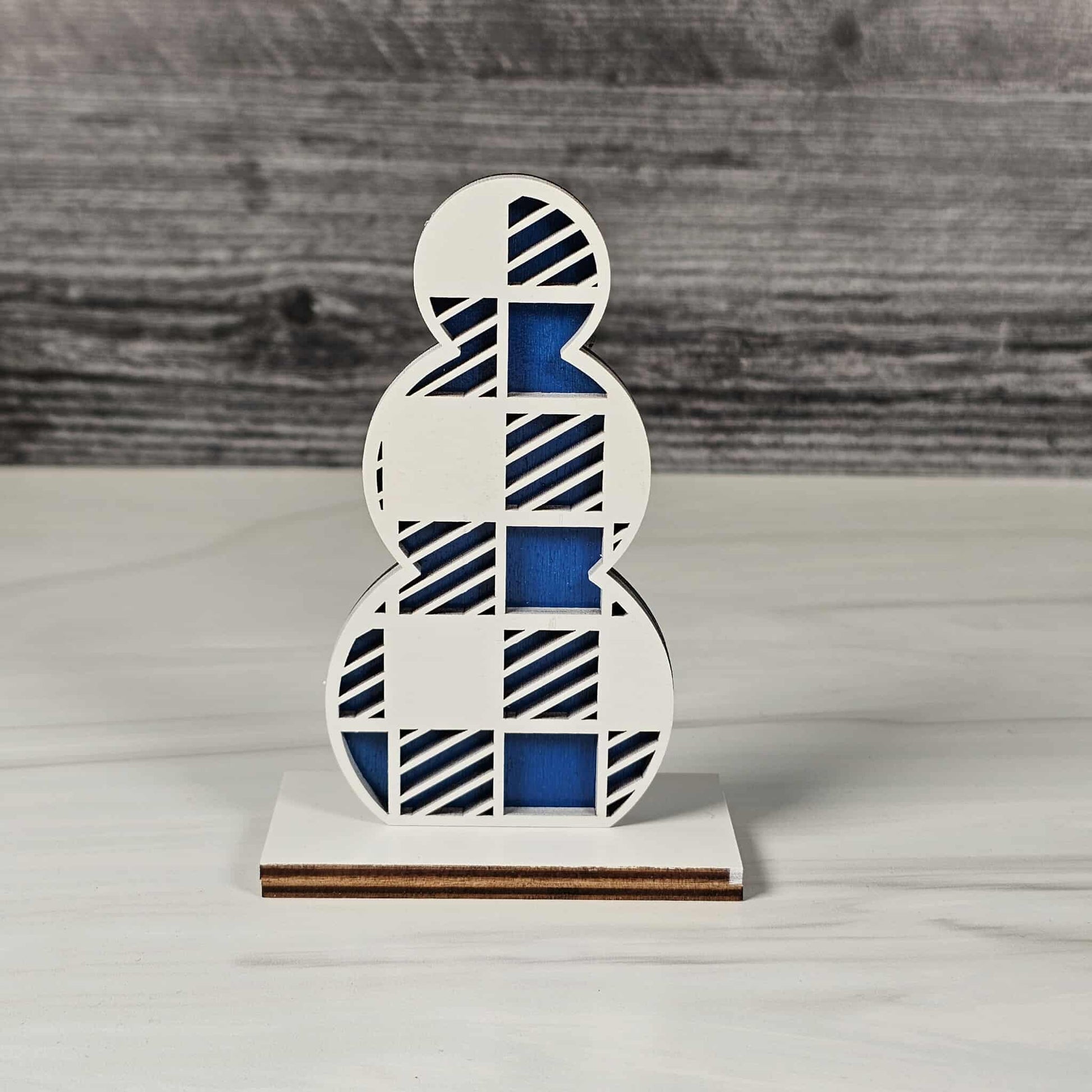 Bring the cozy magic of winter right into your home with our Snowmen Shelf Sitters! Lovingly crafted from laser-cut wood, each snowman is a double-layered delight: the base layer comes in your choice of festive red buffalo plaid, cheerful blue, or evergreen green, while the top layer is a crisp, snowy white, elegantly cut with seasonal patterns and delicate shapes for a heartwarming, wintery feel.