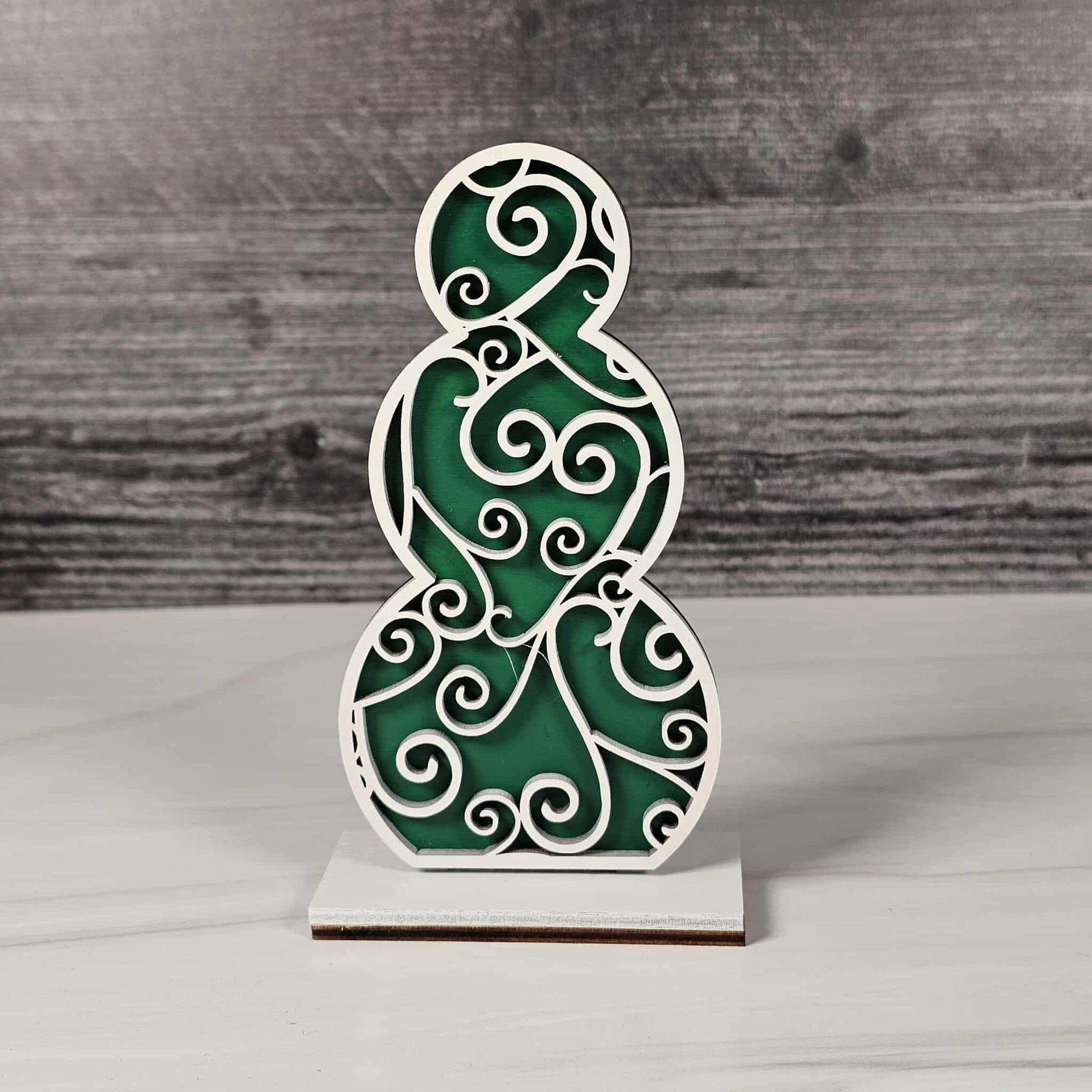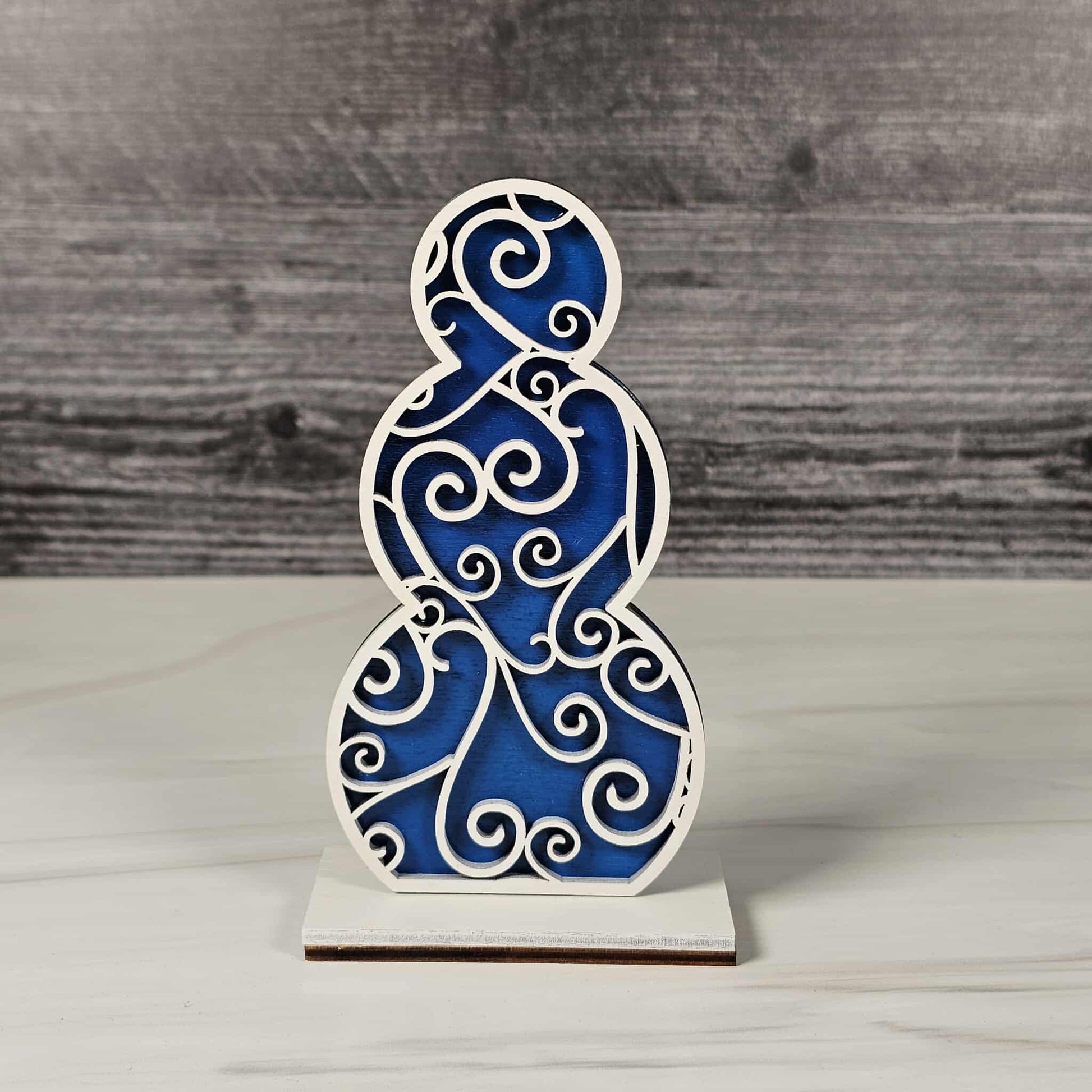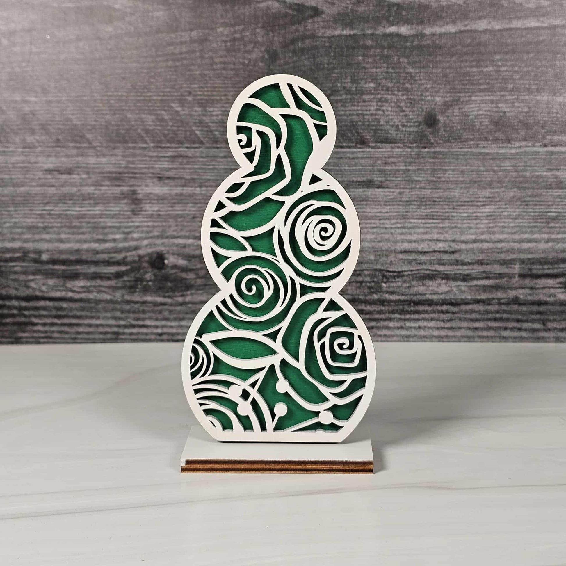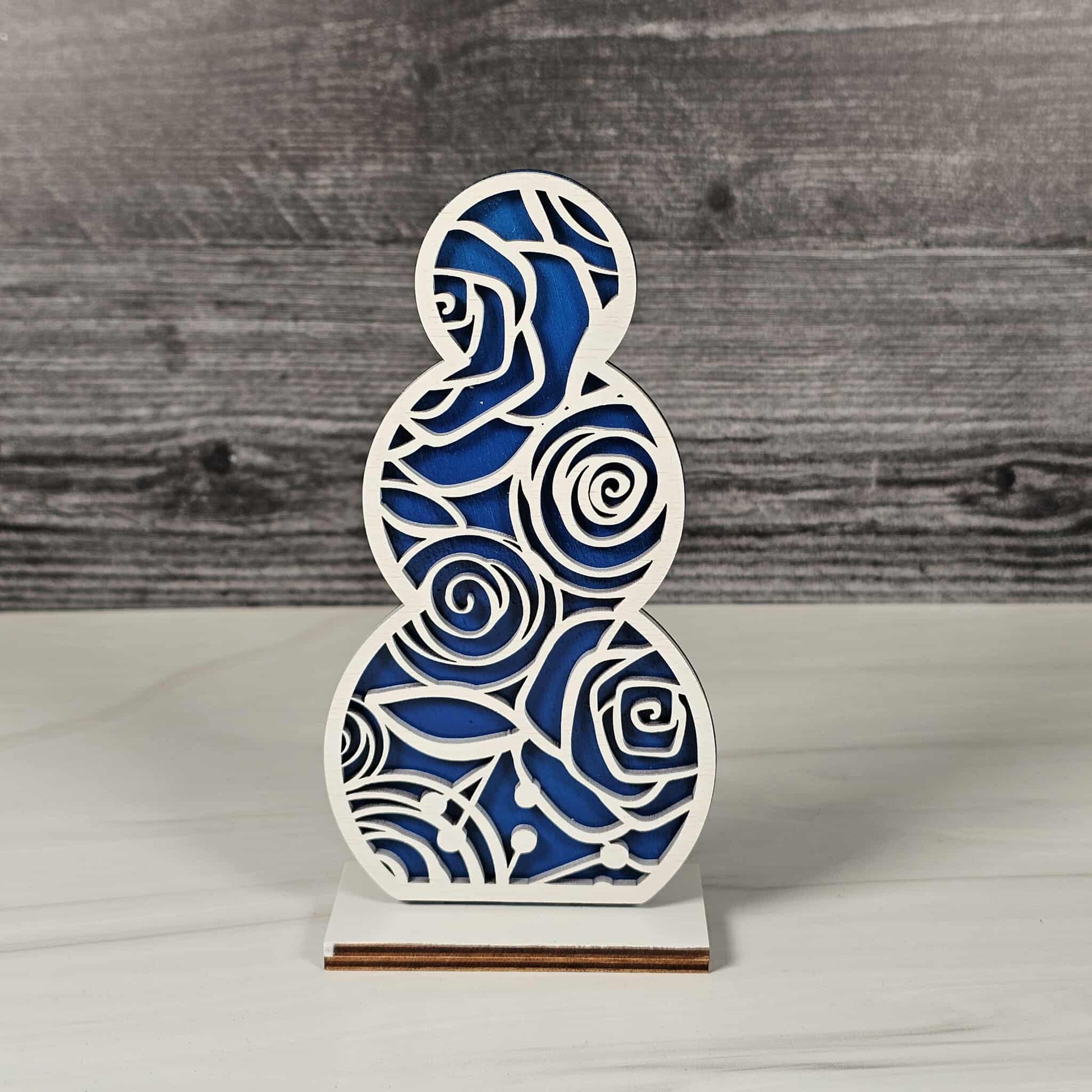 Bring the cozy magic of winter right into your home with our Snowmen Shelf Sitters! Lovingly crafted from laser-cut wood, each snowman is a double-layered delight: the base layer comes in your choice of festive red buffalo plaid, cheerful blue, or evergreen green, while the top layer is a crisp, snowy white, elegantly cut with seasonal patterns and delicate shapes for a heartwarming, wintery feel.