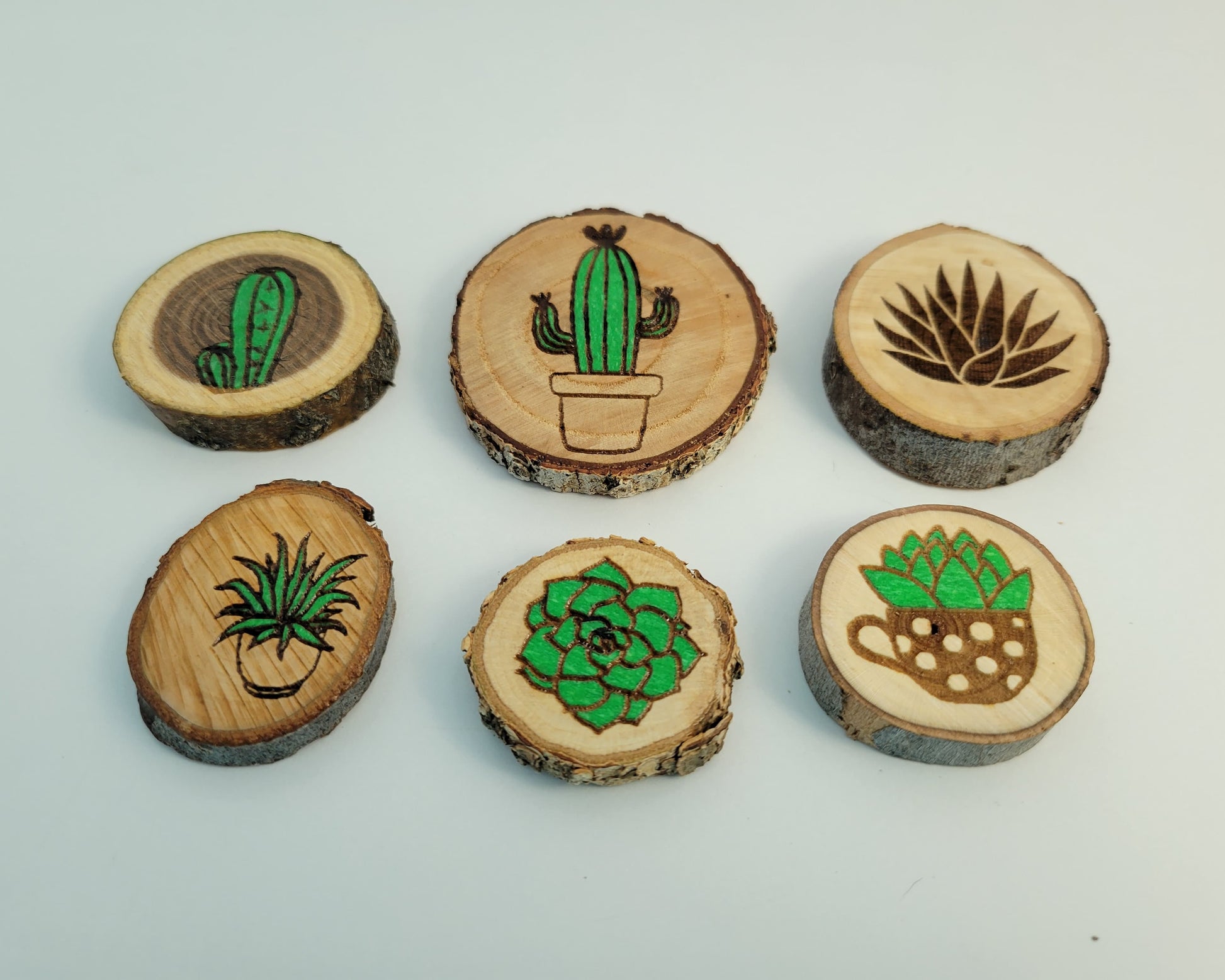 It comes with 6 magnets, 1 of each design. They are 1" - 2" each.